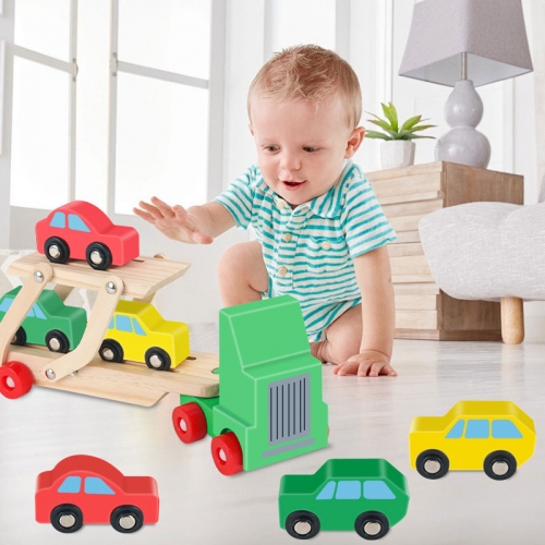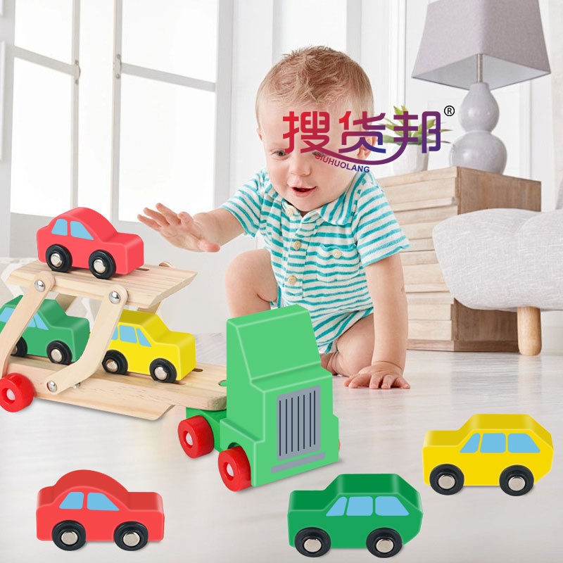 木质早教仿真交通航空模型飞机双层装载运输大货车可拆装玩具