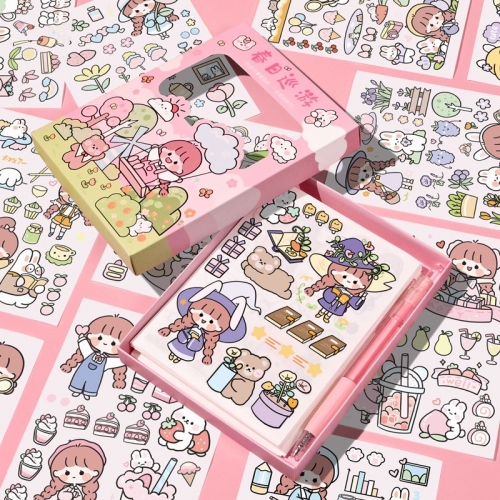 35400九骊文具 阿卡酱和纸贴纸100张+按动刻刀笔手账素材装饰贴画