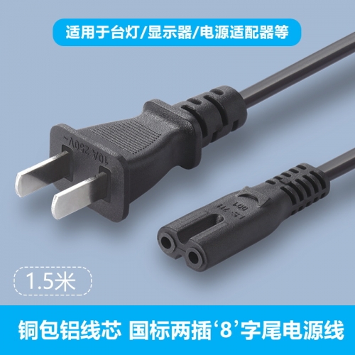 两插8字电源线 国标10A台灯笔记本打印机连接插头线1.5米
