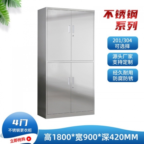 不锈钢更衣柜文件柜加厚201宿舍四门更衣柜医院不锈钢304阻燃柜