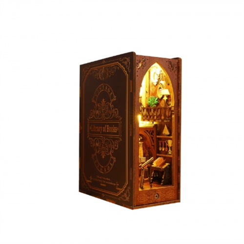 藏书阁复古木质3d立体手工拼装书立模型建筑玩具送生日亚马逊