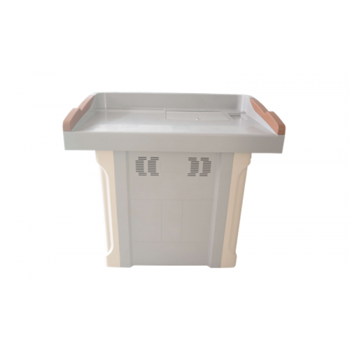 2、材质:台面、、中控盖板、下箱体、左右侧门均采用ABC工程塑一次注塑成型(壁厚大于或等于5MM),整个台面无金属板材,左右侧门,方便装入设备,不受讲台地面限制,结构牢固,不变形;