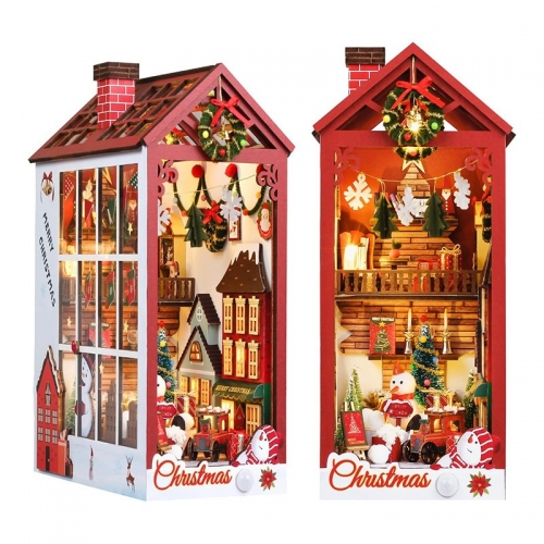 圣诞diy书立发光装饰微缩房子木质拼装3D书立小屋圣诞节礼物