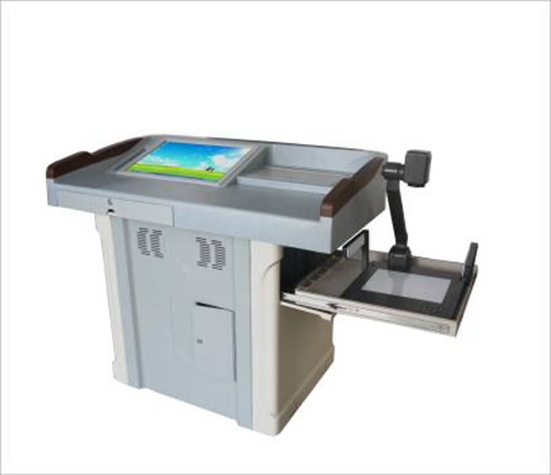1.讲台整体采用分体式结构,长1200mm、宽700mm、高990mm;台面为1200*700*220mm,箱体820*620*770mm。