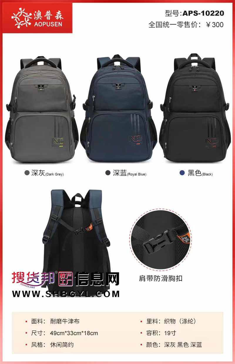 本网页所展示的有关【书包儿童小学一二三到六年级英伦风小学生护脊减负男儿童背包批发APS-10220】的信息/图片/参数等由的会员【湖南省阳光箱包有限公司】提供,由搜货邦会员【湖南省阳光箱包有限公司 】自行对信息/图片/参数等的真实性、准确性和合法性负责,本平台(本网站)仅提供展示服务,请谨慎交易,因交易而产生的法律关系及法律纠纷由您自行协商解决,本平台(本网站)对此不承担任何责任。您在本网页可以浏览【书包儿童小学一二三到六年级英伦风小学生护脊减负男儿童背包批发APS-10220】有关的信息/图片/价格等及提供【书包儿童小学一二三到六年级英伦风小学生护脊减负男儿童背包批发APS-10220】的商家公司简介、联系方式等信息。