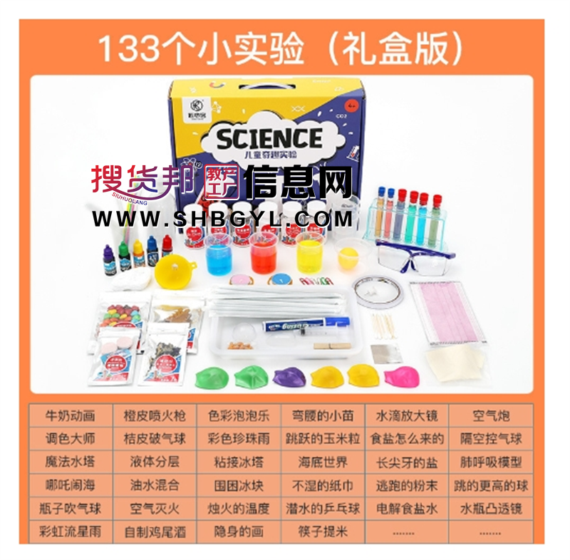本网页所展示的有关【儿童科学小实验套装小学生益智玩具男孩女孩化学材料包】的信息/图片/参数等由的会员【义乌市起跑线玩具有限公司】提供,由搜货邦会员【义乌市起跑线玩具有限公司 】自行对信息/图片/参数等的真实性、准确性和合法性负责,本平台(本网站)仅提供展示服务,请谨慎交易,因交易而产生的法律关系及法律纠纷由您自行协商解决,本平台(本网站)对此不承担任何责任。您在本网页可以浏览【儿童科学小实验套装小学生益智玩具男孩女孩化学材料包】有关的信息/图片/价格等及提供【儿童科学小实验套装小学生益智玩具男孩女孩化学材料包】的商家公司简介、联系方式等信息。